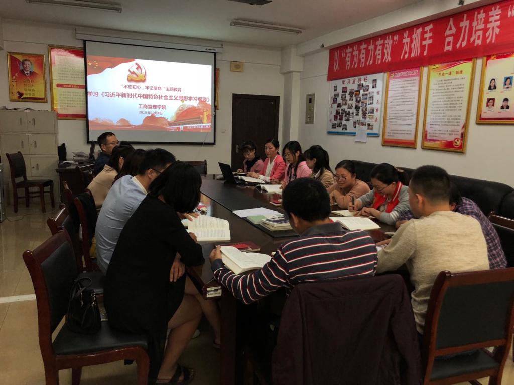 根據《江西財經職業學院“不忘初心,牢記使命”主題教育實施方案》要求,為引導廣大黨員教師原原本本學原著、悟原理,以理論滋養初心、以理論引領使命,牢固樹立“四個意識”、堅定“四個自信”、堅決做到“兩個維護”。工商管理學院黨總支于10月8日下午在綜903會議室開展“不忘初心,牢記使命”主題教育——學習讀本《習近平新時代中國特色社會主義思想學習綱要》第十一章。學習會由胡紅霞同志主持。