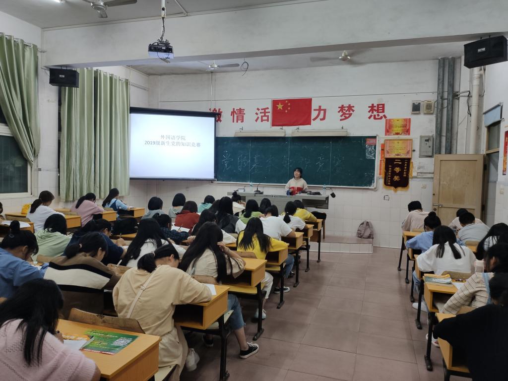為深入學(xué)習(xí)貫徹習(xí)近平新時(shí)代中國特色社會主義思想和黨的十九大精神,扎實(shí)推進(jìn)“兩學(xué)一做”學(xué)習(xí)教育常態(tài)化制度化,引導(dǎo)廣大青年學(xué)生堅(jiān)定共產(chǎn)主義遠(yuǎn)大理想和中國特色社會主義共同理想,聽黨話,跟黨走,不忘初心,牢記使命,外國語學(xué)院于2019年10月10日在教學(xué)樓101、103、104、317教室舉辦了“黨的基本知識”競賽,2019級全體新生參加了此次活動。
