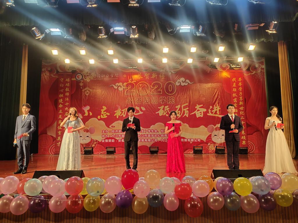 丙年有慶豬辭歲, 子夜無聲鼠報春。值此辭舊迎新之際,經(jīng)濟(jì)貿(mào)易(旅游管理)學(xué)院2020“不忘初心、砥礪奮進(jìn)”元旦文藝晚會暨優(yōu)秀學(xué)生頒獎典禮于12月25日晚19點(diǎn)在校英才交流中心隆重舉行。經(jīng)濟(jì)貿(mào)易學(xué)院黨政領(lǐng)導(dǎo)、江西享享網(wǎng)絡(luò)科技有限公司聯(lián)合創(chuàng)始人孫夏、 九江市潯音文化傳媒有限公司總經(jīng)理助理王紫娟、2018屆學(xué)生會主席王緣緣學(xué)姐、以及我院師生一千余人到場觀看。晚會幸運(yùn)獎品由圓夢初心教育學(xué)習(xí)中心、九江市前進(jìn)駕校友情提供。十佳大學(xué)生獎品由安徽玖福盈和貿(mào)易有限公司、九江市潯音文化傳媒有限公司贊助支持。