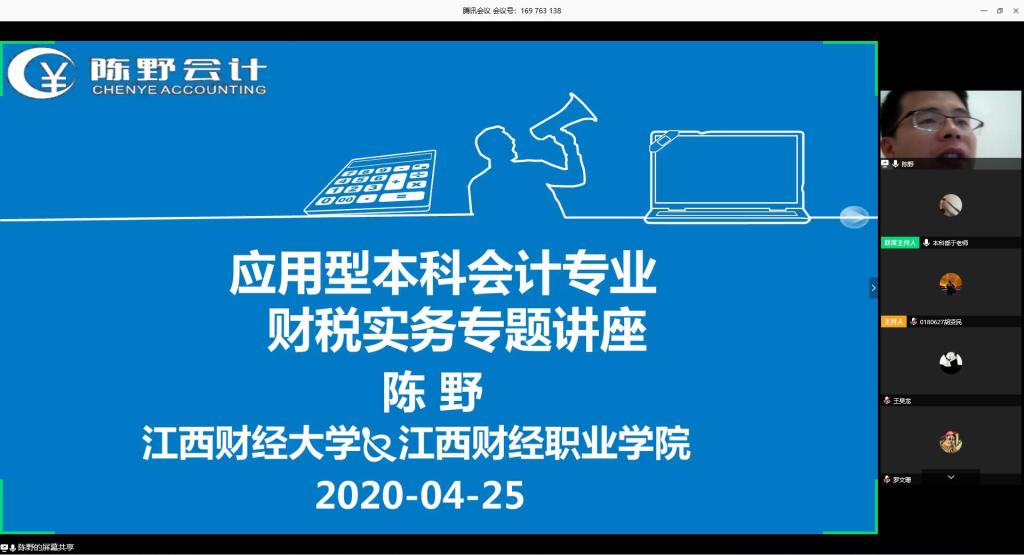 為使應用型本科生更深入掌握和運用專業(yè)知識,著實提高實踐操作能力,2020年4月25日,本科部誠邀全國職業(yè)教育專業(yè)委員會專家導師、國家注冊稅務師陳野老師,通過騰訊會議平臺舉辦了財稅實務專題講座。本科部2018級全體學生及本科部部分老師參加。