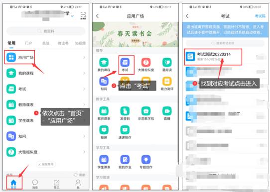 第三種:通過依次點擊“首頁”-“應用廣場”-“考試”,找到對應考試,點擊進入