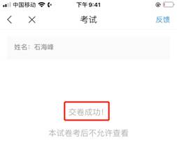 6.成功交卷后,系統會提示“交卷成功”,請務必手動交卷,否則將沒有考試成績。