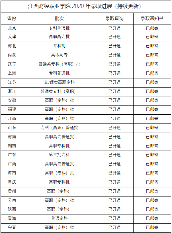 自八月起,我院招就處便進入了緊張的招生錄取階段,截至2020年9月15日,我院已完成以下省份批次的錄取,考生可憑各自的考生號或身份證進行錄取情況及錄取通知書的查詢。未開通查詢的省份考生請耐心等待,錄取工作正在持續推進中。