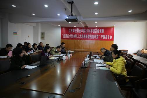 11月29日下午,由校黨委書記何桑教授主持的國家社會(huì)科學(xué)基金“十三五”規(guī)劃2016年度教育學(xué)一般課題——《應(yīng)用技術(shù)型本科人才培養(yǎng)長效機(jī)制研究——基于高職院校主導(dǎo)的多元主體視角》開題報(bào)告會(huì)在我校黨委會(huì)議室召開。會(huì)議特邀了省教育科學(xué)規(guī)劃辦公室主任吳重涵教授、九江職業(yè)技術(shù)學(xué)院經(jīng)濟(jì)管理學(xué)院院長徐淑華教授、江西財(cái)經(jīng)職業(yè)學(xué)院副校長謝小云教授作為評(píng)審專家出席會(huì)議。報(bào)告會(huì)由科研管理處處長劉靖宇主持,課題主要參與人劉雙紅教授進(jìn)行了開題報(bào)告,院長林火平教授及其他課題組成員、本科部相關(guān)人員和科研管理處相關(guān)人員出席了報(bào)告會(huì)。
