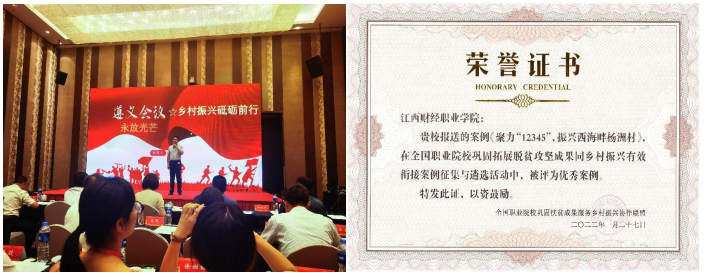 2022年,駐村工作隊第一書記根據駐村實踐思考而凝練申報的《聚力“12345”,振興西海畔楊洲村》榮獲全國職業院校鞏固扶貧成果服務鄉村振興協作聯盟優秀案例。《鄉村振興背景下高職院校駐村幫扶“五度五行”模式研究——以江西財經職業學院為例》課題經專家評審,確定立項為全國職業院校精準扶貧協作聯盟研究課題。