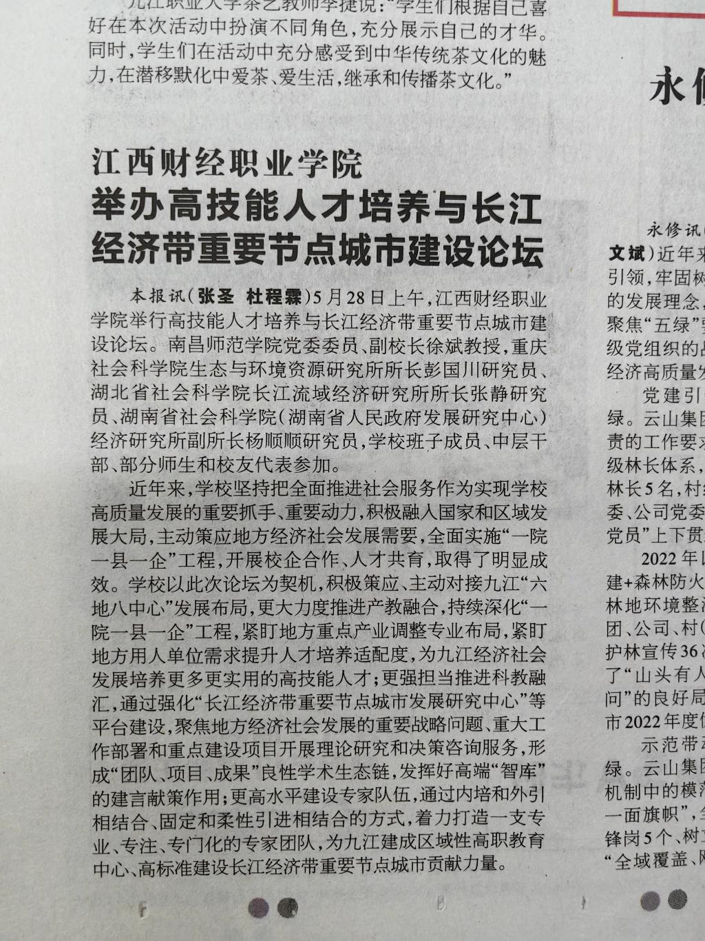 九江日報數(shù)字報-舉辦高技能人才培養(yǎng)與長江經(jīng)濟帶重要節(jié)點城市建設論壇 http://jjrb.jjxw.cn/html/2023-05/30/content_85763_16160554.htm