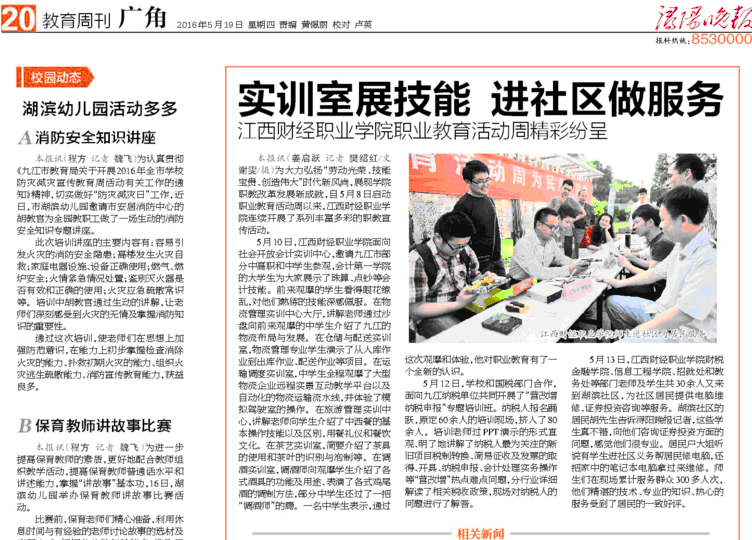 5月19日,《潯陽晚報》報道我校開展職業(yè)教育活動周情況。