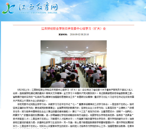 9月2日,江西教育網(wǎng)報道我校黨委中心組召開黨委中心組學習(擴大)會。