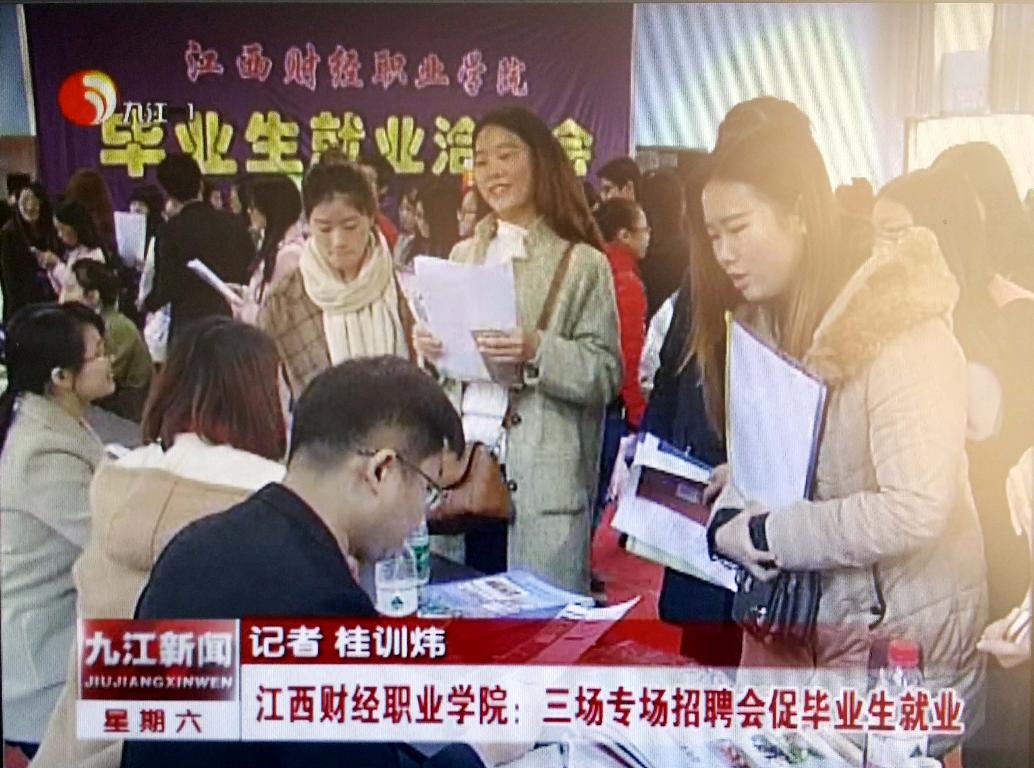 12月3日,九江電視電新聞頻道對我校連續舉辦三場大型招聘會促進畢業生就業情況進行報道。