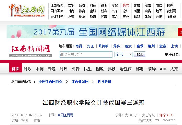 6月11日,江西日報、中國江西網報道我院再次榮獲全國職業院校會計技能大賽一等獎。