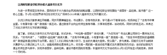4月26日,江西教育網報道了我校舉辦第八屆讀書文化節。
