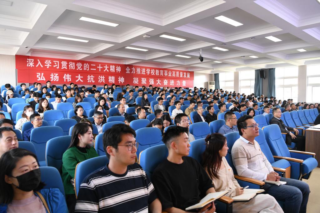 劉彪文指出,蔣金法教授的報告內容豐富、分析透徹、深入淺出,對我們準確把握黨的二十大和主題教育精神,深入貫徹習近平總書記關于教育的重要論述提供了良好指導和遵循。他強調,教育要與國家事業的發展相適應、與人民群眾的期待相契合、與國際地位相匹配,全校黨員領導干部、教育工作者要堅持不懈用習近平新時代中國特色社會主義思想凝心鑄魂,深入學習掌握中國式現代化的重要特征、精髓要義、實踐要求,準確把握中國式現代化與學校思想政治教育的邏輯關系,聚焦立德樹人根本任務,立足學校處于改革發展關鍵時期的實際,緊盯學校“三五十”戰略目標,發揮教師主體作用、突出學生主體地位,全面提升學校思想政治教育工作質量和水平,奮力譜寫學校高質量發展的精彩篇章。