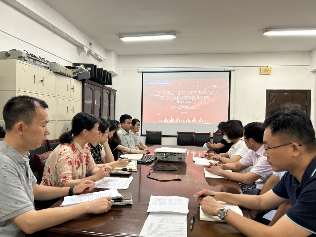 為推動學習貫徹習近平新時代中國特色社會主義思想主題教育深入開展,深入學習習近平總書記主持中共中央政治局第五次集體學習的重要講話精神,6月20日,城鄉建設學院在綜合樓1103組織集體學習,學院全體教職工參加學習。