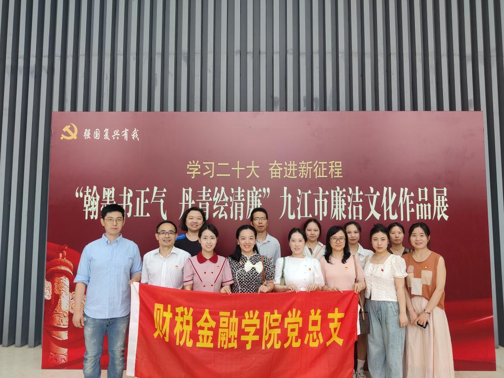 為學習貫徹習近平新時代中國特色社會主義思想和黨的二十大精神,弘揚革命文化和社會主義先進文化,加強黨員干部黨風廉政教育,筑牢拒腐防變的思想,6月30日,財稅金融學院黨總支赴九江市民服務中心,參觀“翰墨書正氣、丹青繪清廉”廉潔文化書法美術作品展,開展主題黨日活動。