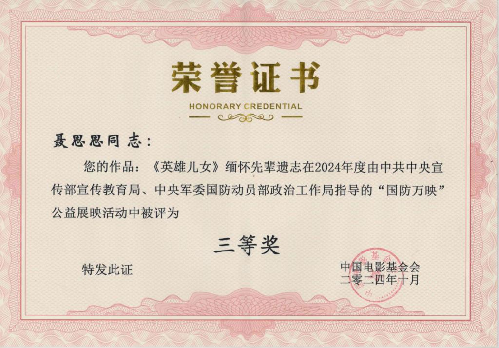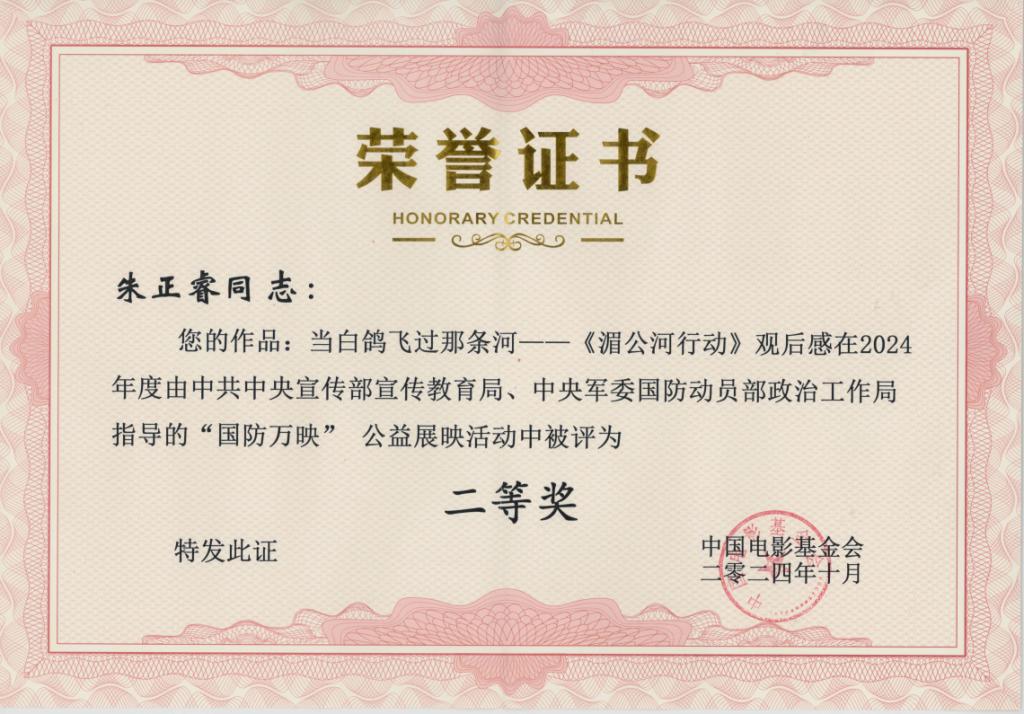 學院精心挑選了《英雄兒女》《建國大業》《湄公河行動》等主題鮮明、制作精良的優秀國防軍事主題影片,為同學們提供一堂生動、深刻的愛國主義教育課。觀影過后,同學們一致表示,要學習革命先輩們艱苦奮斗、無私奉獻的精神,并紛紛撰寫電影觀后感、繪制主題連環畫,參加活動作品征集。最終24建設工程管理1班朱芷睿、24建設工程管理2班聶思思分別獲得此次活動二等獎及三等獎。